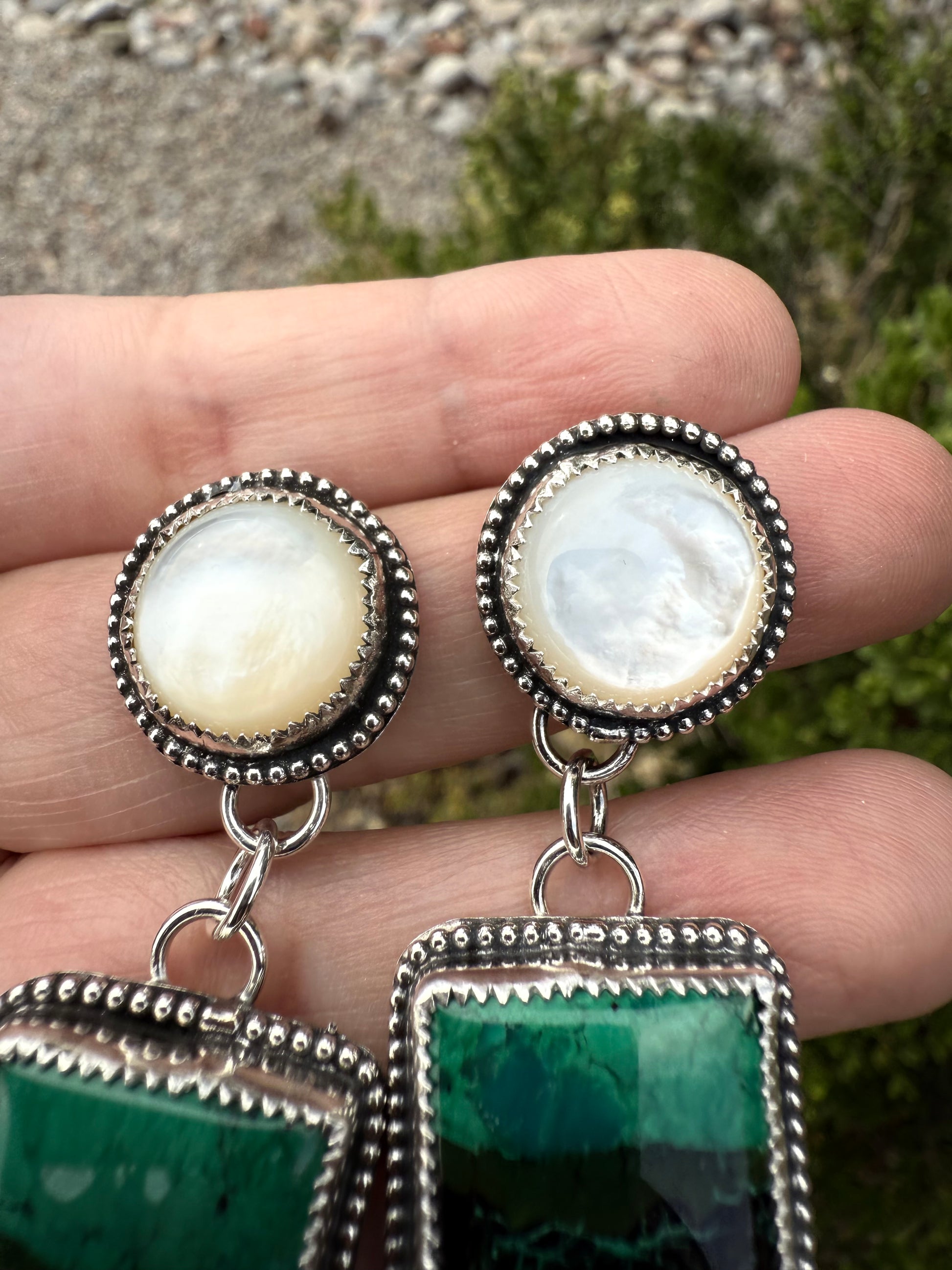 - Azurite Malachite Squares and 12mm mother of pearls